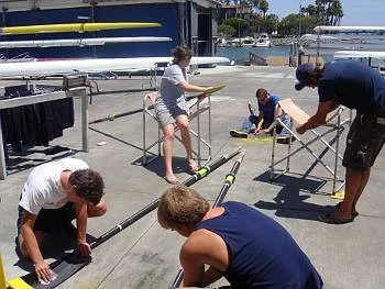 And you thought Long Beach State athletes had the summer off? Think again! Rowers are better than that! Major work was done the first half of the summer, painting oars, taking coaching launches out of the water for service, renovating shells, cleaning the boat bays, and getting new equipment for the coaching office.