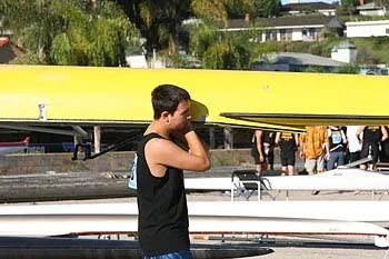 I arrived at the Week-of-Welcome BBQ and met many of the rowers, alumni, and coaching staff. "So far so good," I thought to myself. The evening was enjoyable. "I think I'll give practice a shot." Monday morning came along and I arrived at the Pete Archer Rowing Center for my first practice. Some of the varsity squad put me on a crazy looking contraption called an Erg and taught me the basic techniques and skills needed to be a rower. The Erg wasn't too hard and I was finding this all quite enjoyable. That all changed when I went out for the first time in a boat a few days later. "This is CRAZY! WHAT WAS I THINKING? I have never done anything so difficult in my life!" I was stunned at how the varsity squad could keep their boats from flipping and how they all looked so seamless and coordinated. I was feeling anything but seamless and coordinated.