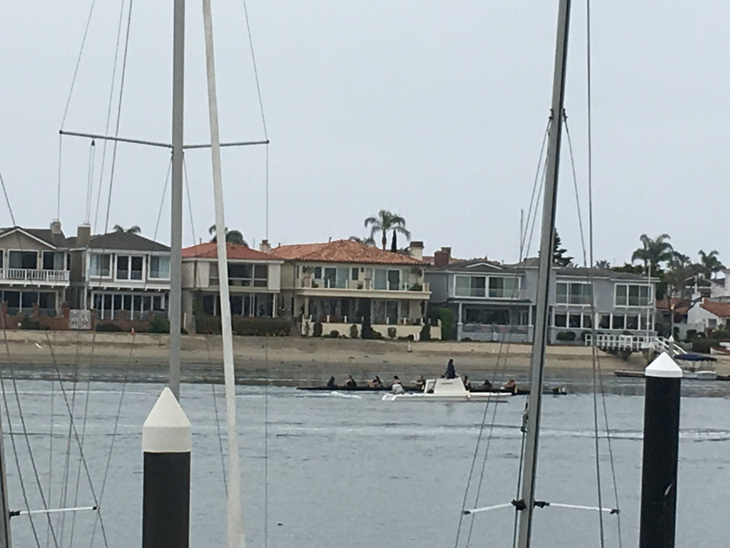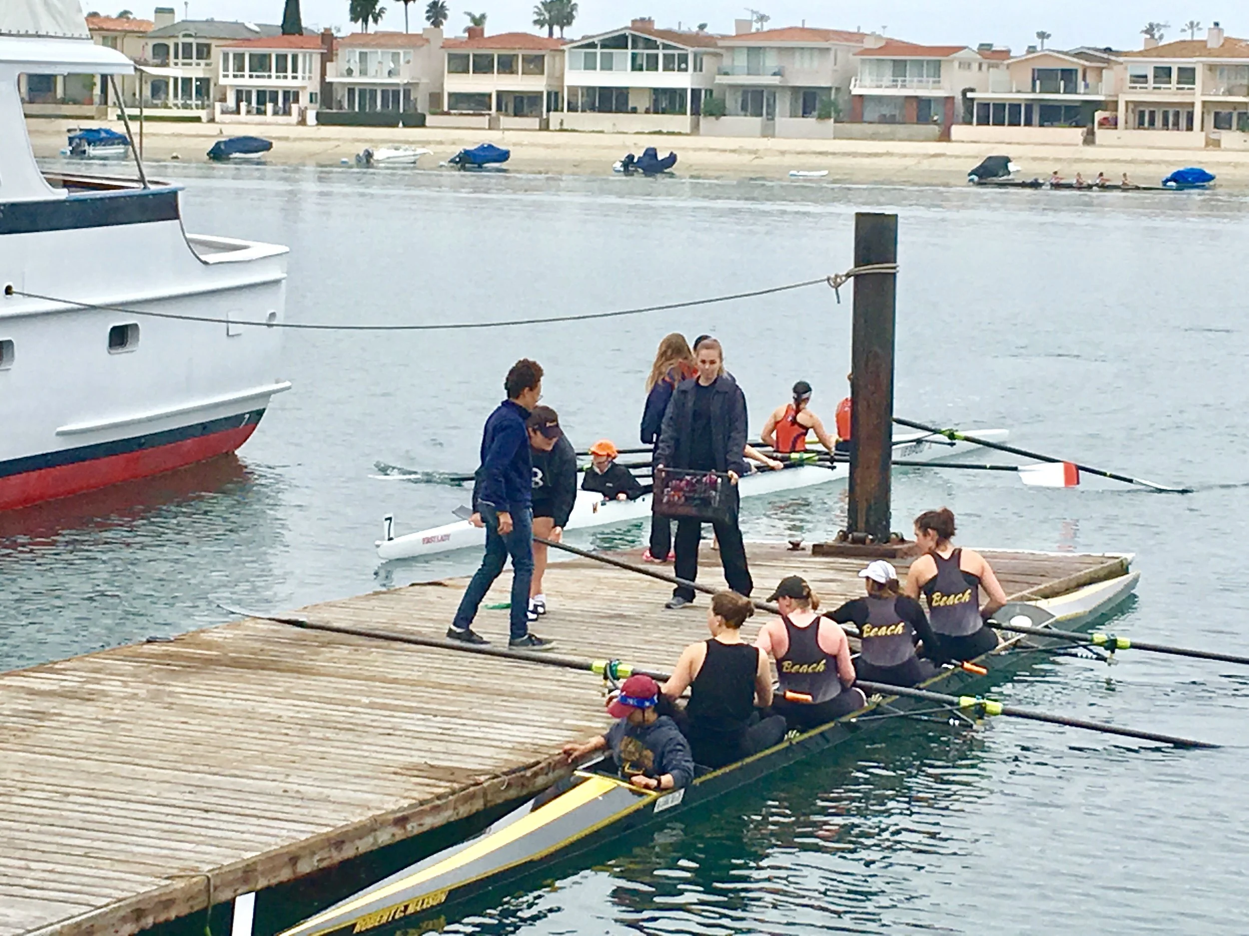 The Long Beach girls jumped out to first place within the first 250 meters of the race. Followed closely by UCI and OCC. Chapman had an equipment malfunction and actually stopped rowing for a brief moment. Unfortunately, they were beyond the breakage point of restarting the race, so they picked it back up and did what they could to finish the race. By the 1000 meter mark Long Beach had open water on UCI and now Humboldt St. in 3rd. The entire women’s team plus a few from the men’s team and some parents and fans were all cheering from the docks at OCC and on the 2nd floor balcony of their boathouse, trying to give the girls in the boat some extra energy. But these girls did not need it today, with 500 meters to go they opened up even more water and keep widening the gap of victory all the way to the finish. They rowed well together and made it look effortless, or at least did so for the few hundred meters I saw them for in the body of the race. It was an undisputed victory for the women’s V4+ on Saturday, holding the lead from start to finish.