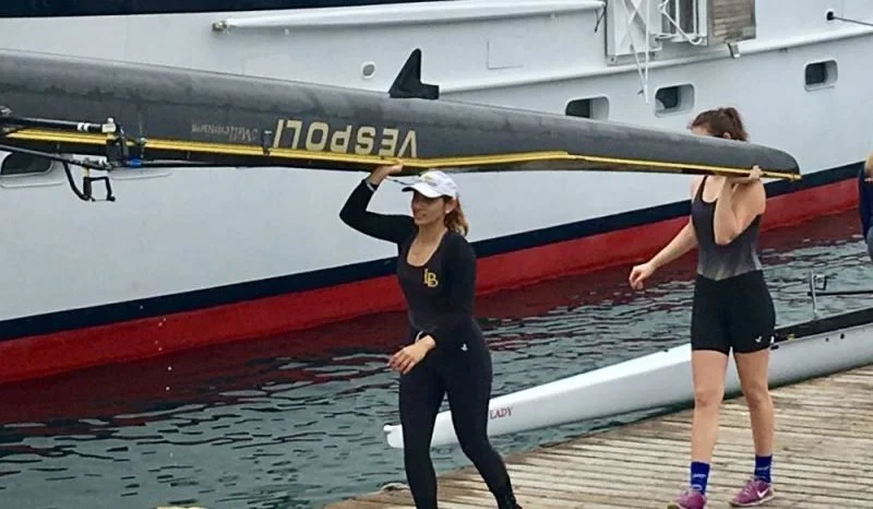 I was driving down PCH en route to the Orange Coast College boathouse when I spotted four girls wearing Long Beach Rowing gear running down the street. The look in their eyes was calm and fierce at the same time. They were locked in and ready to go, even during their on-land warm-up jog. The line up for the Long Beach Women's V4+ from stern to bow was Destanie Brush in stroke seat (3rd year rower), Penny Gallardo in 3 seat(4th year), Megan DaVore in 2 seat(2nd year), and Brooke Myrick in the bow (1st year). Being such a diverse group when it comes to experience, this would be an easy crew to overlook if you were a competitor. But no one can deny the hard work these girls put in during the “off-season” and continue to do so now while in-season. The race was 2000 meters long, the competition was OCC, UCI, USD, Chapman, and Humboldt State. Some tough crews to say the least.