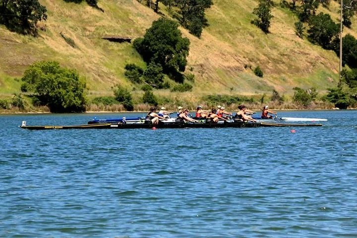 WIRA is the Western Intercollegiate Rowing Association. For west coast collegiate club rowing, this is typically the championship regatta (unless you go to ACRA). The venue is set at gorgeous Lake Natoma, a few miles outside of Sacramento, CA. Do not let the beauty of the lake fool you, the competition is fierce. If you want to win on that water, you need to earn every meter. When teams showed up on Friday to practice the wind was so bad that many crews were not allowed to row until it was safe. Some did not get row at all. This can be a significant disadvantage if you have never raced on a particular course before. It is expected to get in a practice row the day before a regatta if possible, especially when traveling to a new body of water. This was disheartening and reminiscent of WIRA last year. The wind ended up being too severe on Saturday afternoon and almost half of the afternoon races were canceled. Thankfully, the wind died down and the conditions ended up being some of the best I've seen. There was a strong tail wind pushing boats towards the finish line, as well as a strong current pulling boats in the same direction. It was rumored that with the wind and current, teams should expect to shave 10-15 seconds off of their expected times.