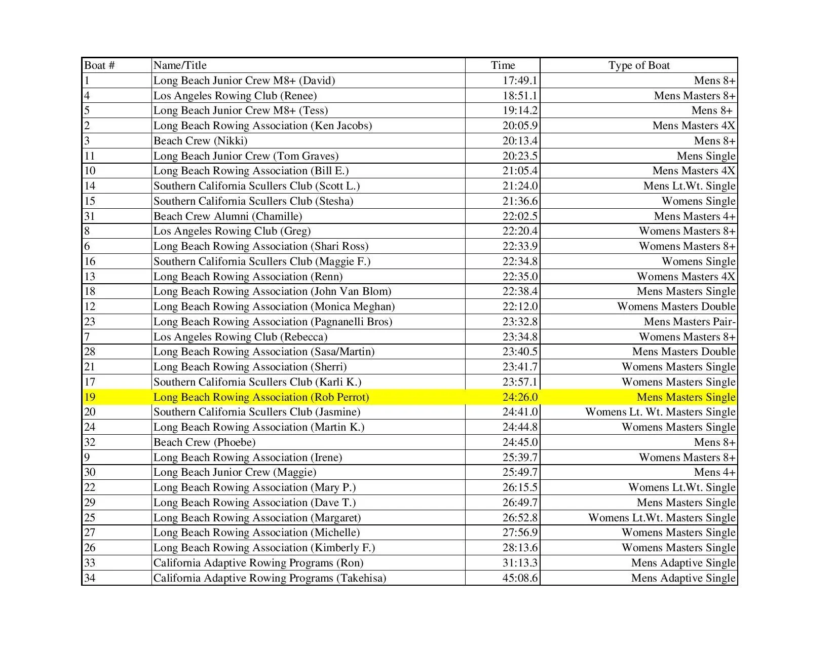 The origins behind this last Bay Series being called the "Most Ordinary Regatta" is simple: the boat with the most average, or “most ordinary”, times will be crowned winner. Now that isn’t to say that the rowers in the boats set out with that goal in mind. The winner of October’s Bay Series was the Long Beach Rowing Association’s own Masters rower Rob Perrot, who finished the race with a time of 24:26.0.