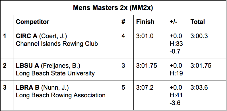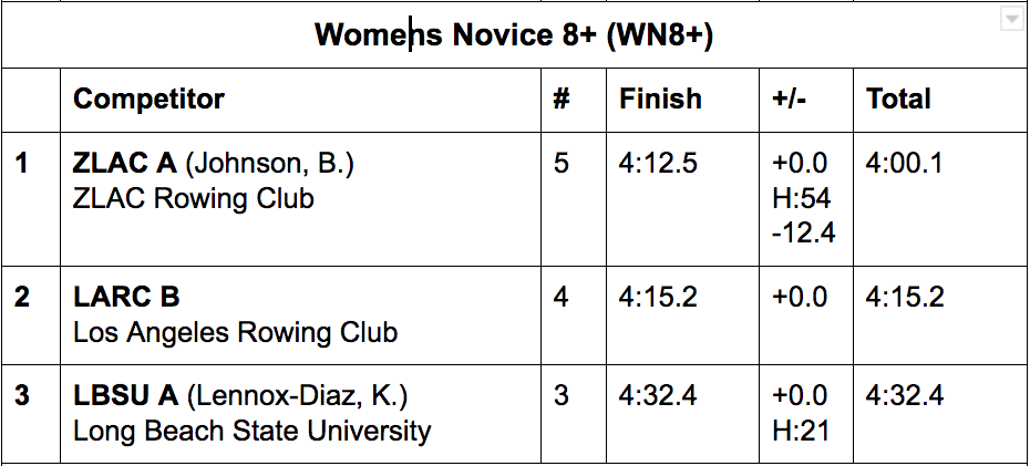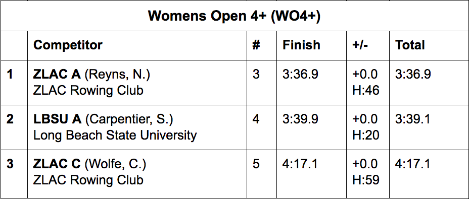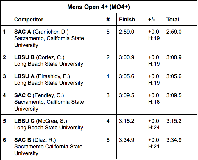 Long Beach State raced six heats— WN4+, WN8+, WO4+, MO4+, MM2x, WM8+, placing in each category.