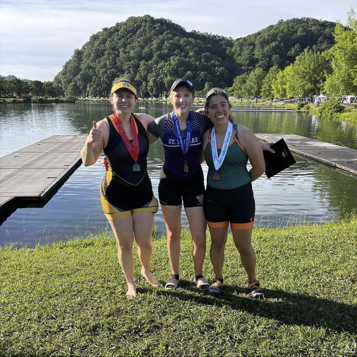 W1X Results:• Time Trial: 2nd place (8:09.486)• AB Semifinal: 1st place (9:01.439)• Grand Final: 2nd place (8:26.000)The grand final saw Bennett and St. Thomas finish within seconds of each other, with third place trailing significantly at 9:03 (Colorado State). Bennett’s silver medal performance highlighted both individual excellence and the program’s depth of talent. Novice 4+ - Fifth Place FinishThe novice four with coxswain finished fifth at the national level in their first championship appearance, a remarkable achievement for first-year rowers competing against the country’s best programs.Crew Lineup:Coxswain: Celeste Reynoso4-Seat: Ruby Bogonovich3-Seat: Meghan Arendt2-Seat: Lupita NietoBow Seat: Mia Monsour